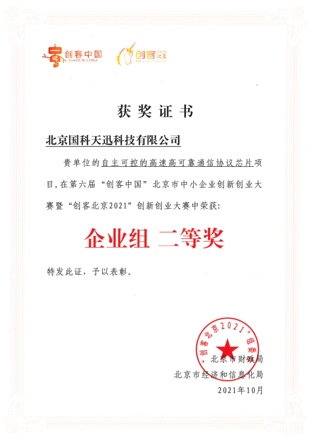 大赛自6月启动以来,受到广大中小企业和创客团队高度关注,吸引了全市近5千个项目报名。国科开云官方站线官网入口站登录-开云(中国)参赛的“自主可控的高速高可靠通信协议芯片”项目,经初赛、复赛两个月激烈角逐,在众多项目中表现抢眼,成功入围新一代信息技术领域决赛,经路演获企业组百强,后与百家企业共同比拼及专家组评审后最终获此殊荣。